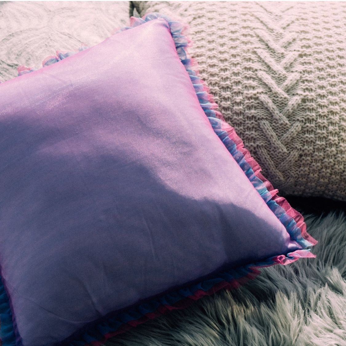 The ruffled design that brings out the girliness makes the room brighter and more fun. The size is perfect for a 45cm x 45cm cushion. Please note that this cushion cover is for sale only.