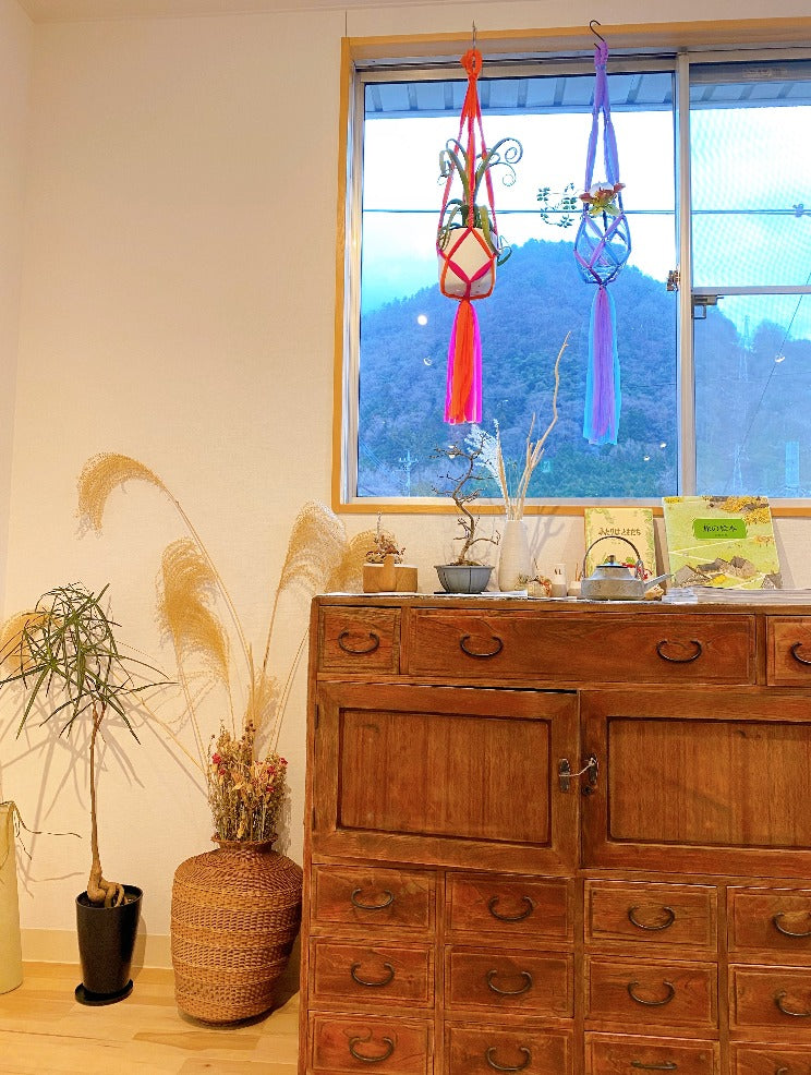 - Instead of potted plants, you can hang cut flowers in glass vases or vases for a cute look♡