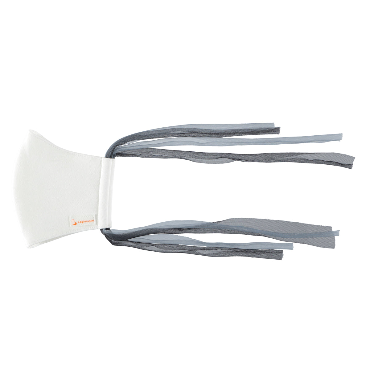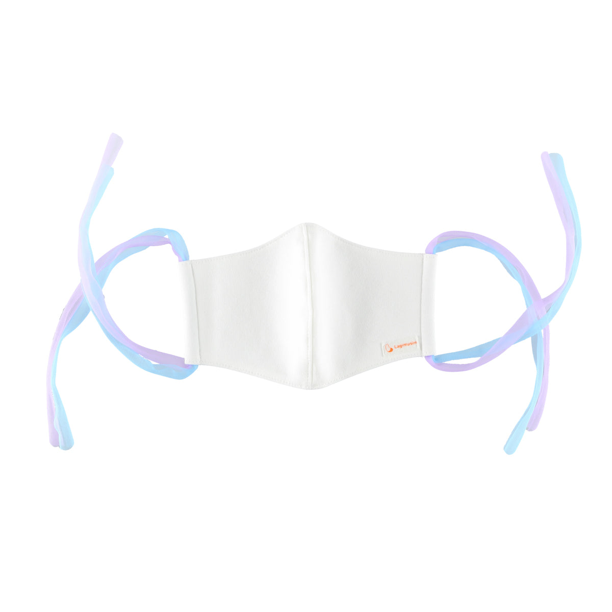 - 2. Turn the string and hide the knot in the string loop part of the mask.