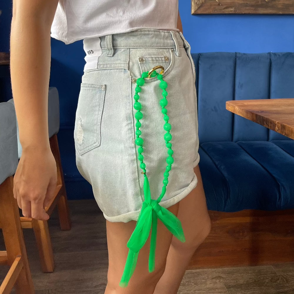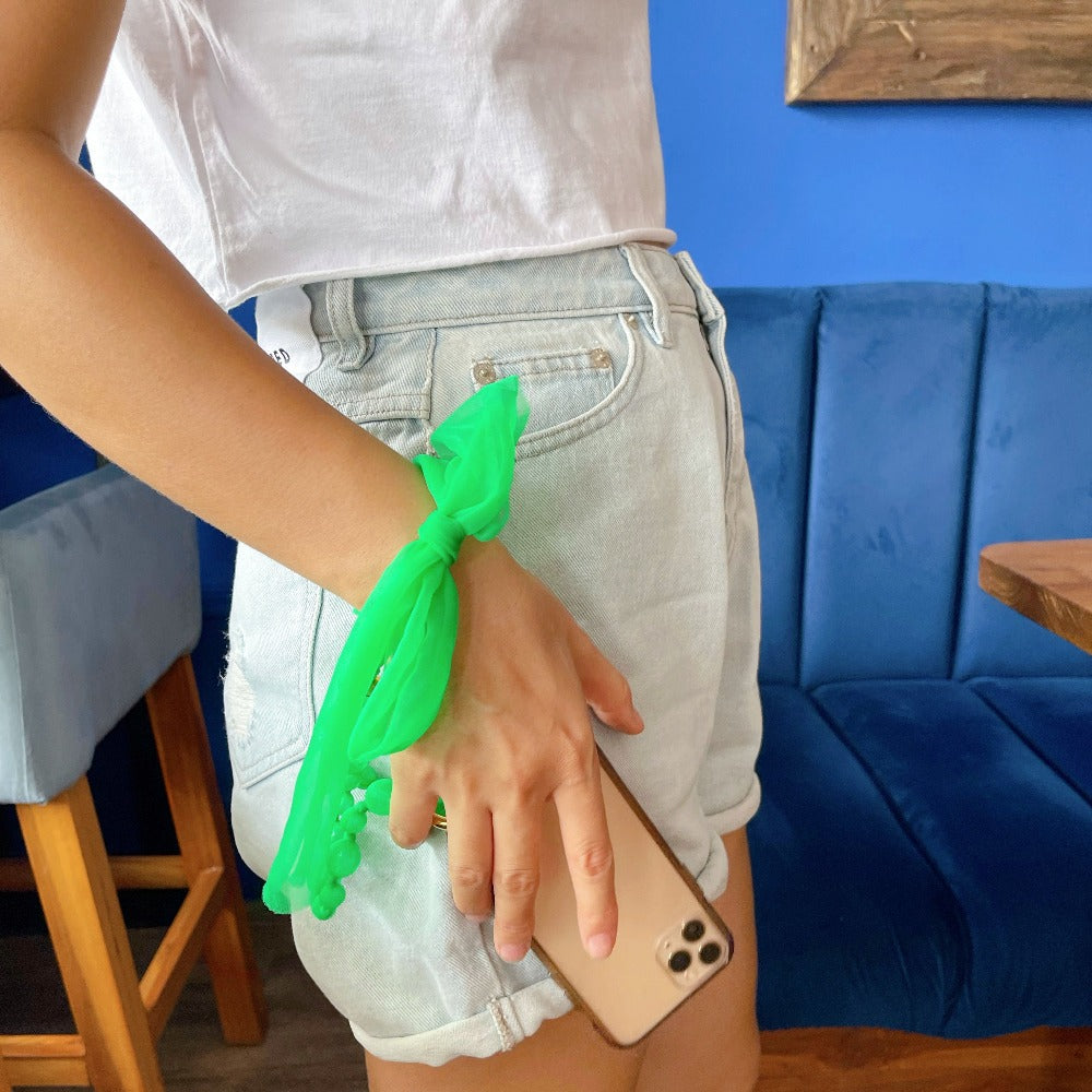 柔らかいリボンと透明なアクリルビーズが、日常に彩を加えます。